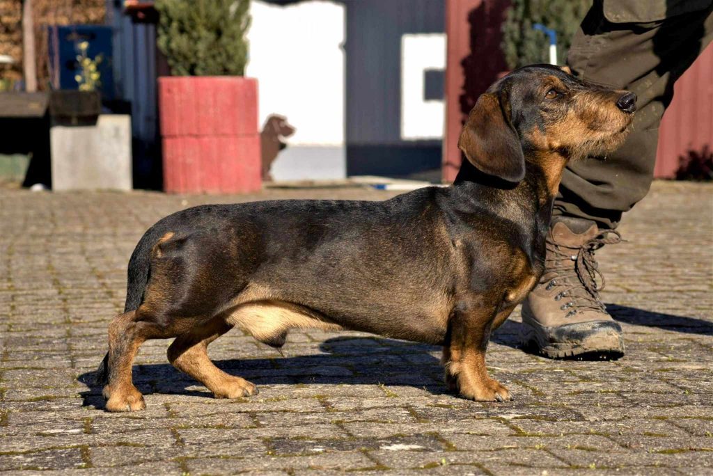 Gewicht 10,3 kg BU 49 cm . Murmel ist ein wesensfester Rüde, der hauptsächlich auf Stöberjagden und auch gelegentlich zur Nachsuche eingesetzt wird. Er zeigt hierbei eine weiträumige Suche und arbeitet mit sehr viel Passion am Wild. Murmel verfügt über eine gute Wildschärfe und Härte. Trotz der vielen Drückjagdeinsätze sind seine körperliche Verfassung und seine Gesundheit beeindruckend. Diese Vitalität vererbt er auch seinen Nachkommen.