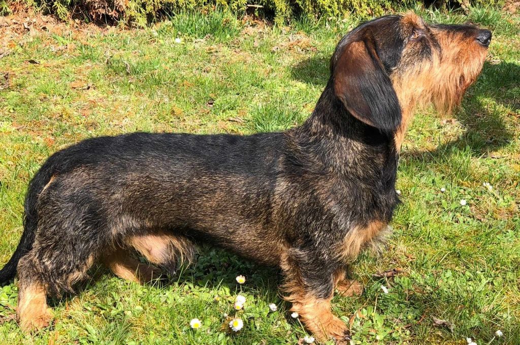 Gewicht: 10,0 Kg BU 47 cm Nielse ist unser „Experte“ auf der Krankfährte. Erschwerte Nachsuchen meistert er souverän und findet stets sicher ans Stück. Aufgrund seiner ausgeprägten Schärfe und Härte ist es ihm möglich, auch wehrhaftes Wild souverän zu stellen und zu halten bzw. zu binden. Schweren Herzens mussten wir ihn aufgrund einer chronischen Prostataentzündung kastrieren lassen. Er steht somit leider für die Zucht nicht mehr zur Verfügung!